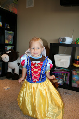 Tucked away in my moms attic is a small box containing a few of my "favorite" things to wear as a child. I probably will never put them on Reagan because while they were beautiful dresses back when I was a kid... they arent exactly the style of dresses that I care for as an adult. But one thing my mom did save was a red cowgirl costume. I wore it for my 3rd Halloween. At a visit to my moms house she pulled it out. The elastic was shot but other than that it was just like new. We (meaning my mom or grandma, I cant remember which one) fixed the elastic and here we are... more than 25 years later and Reagan is wearing the exact same cowgirl costume. Pretty cool huh?